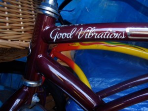 I was about to give up on the Kegel Balls . . . and as I was eating lunch with mi Malito (husband), after a beautiful bike ride, I looked up at my bike, and this is what was decaled on the top tube: