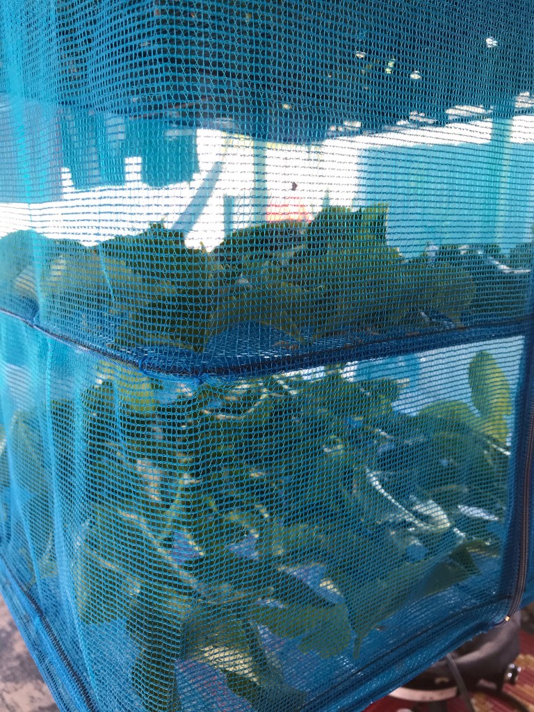 I found this great hanging dehydrator at the Vietnamese market near my house, and that is what I use to dry my various herbs and plantitas. Today, I rinsed off the passionflower leaves and then laid them out in the dehydrator. I left them outside so the water droplets could completely dry and then I transferred them inside. It should take about a week for the leaves to dry, and then I will update this post with a video of how I make my tincture. And if I get enough maracuya (passion fruit) I will show you how to make a refreshing agua fresca.